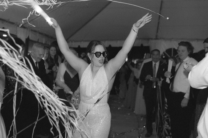 For the overall vibe of the wedding, the couple knew they wanted "intimate hangout vibes with a touch of class". Candles were a must for the bride and she was so happy they went with them. The candle lit glow was everything.