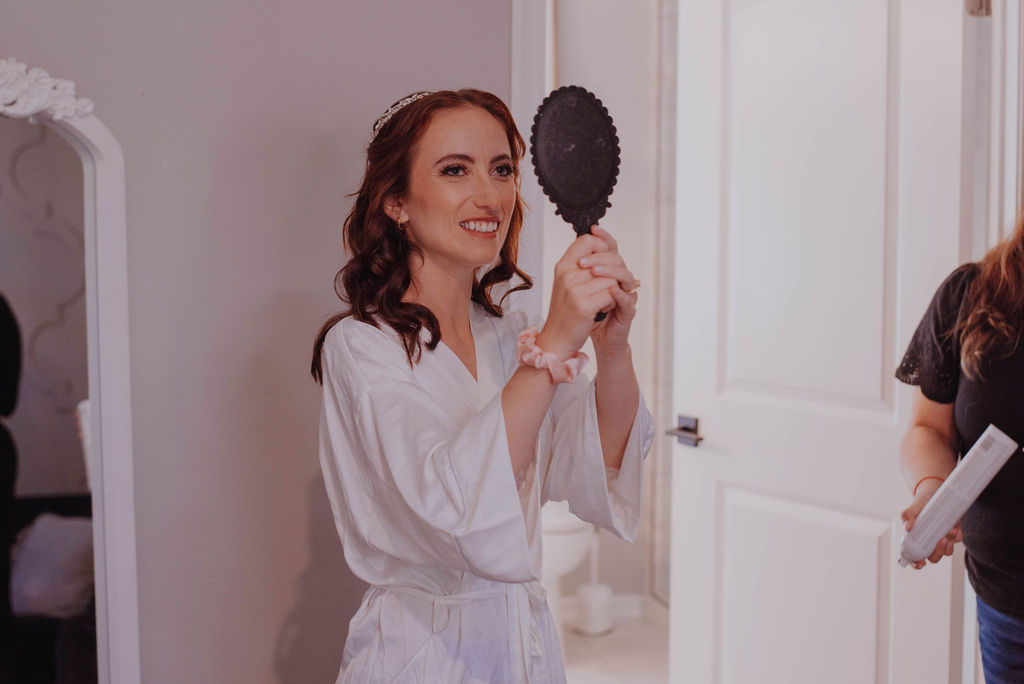 The bride got ready in the main house on site with help from Sandra Makeup & Artistry. Sandra did the bride’s hair and makeup. She provides services for many special occasions.